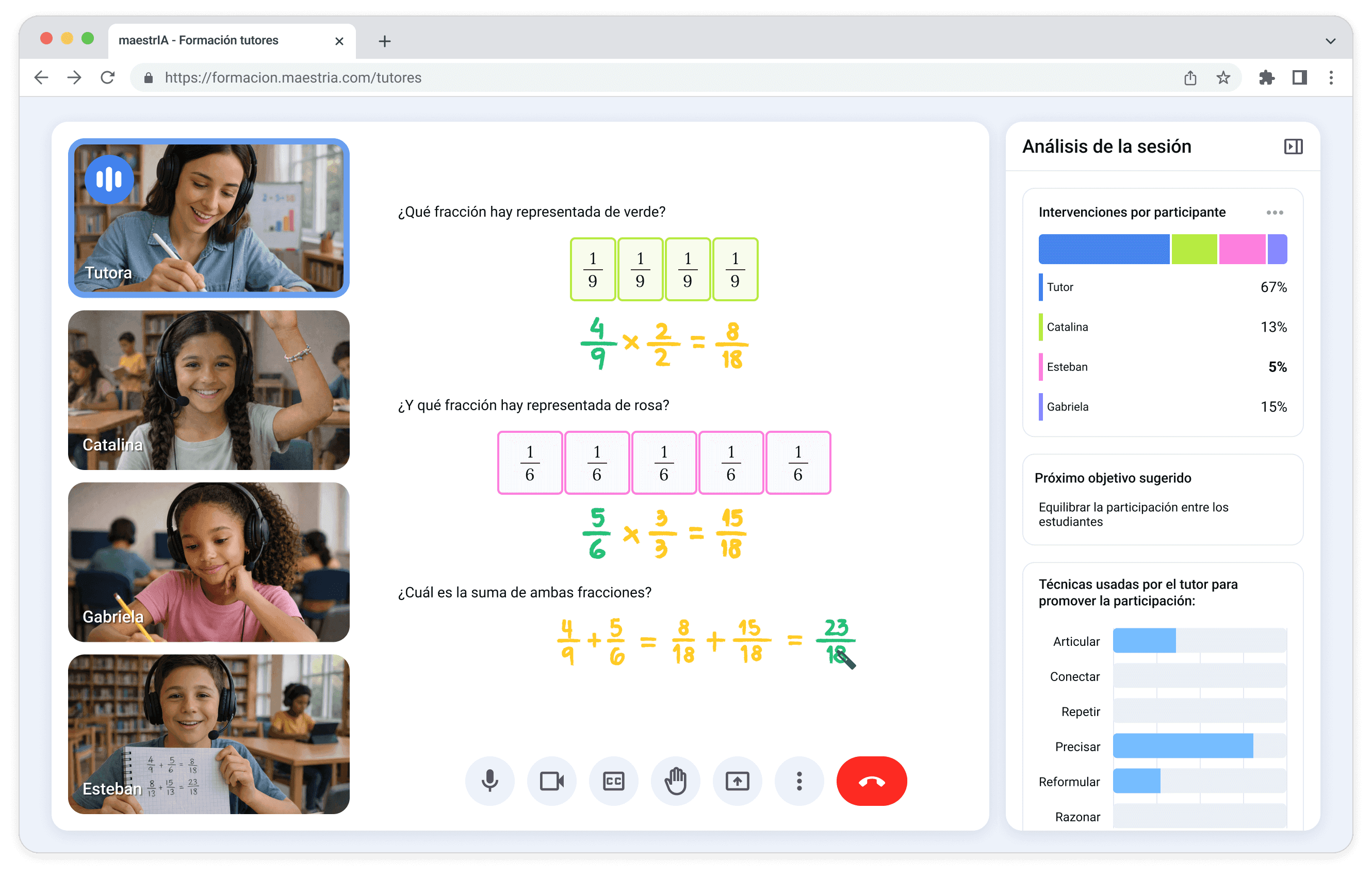Nuestra tecnología analiza los datos de las interacciones entre tutor y estudiante, permitiéndonos hacer un seguimiento en tiempo real y mejorar continuamente nuestras herramientas y método educativo.