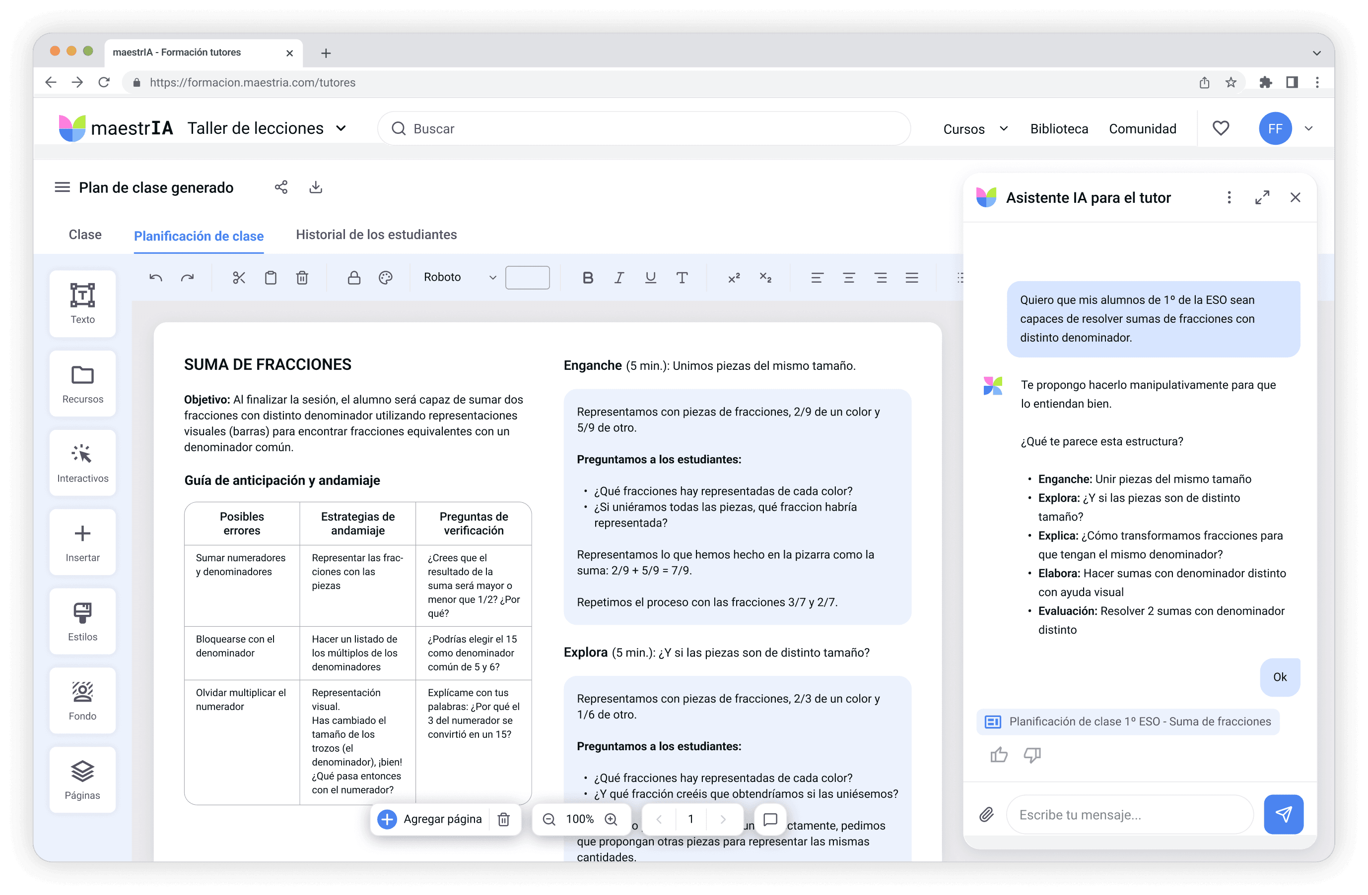 La IA sugiere actividades adaptadas al nivel de cada estudiante, prepara materiales personalizados y ofrece feedback sobre cómo mejorar las sesiones.